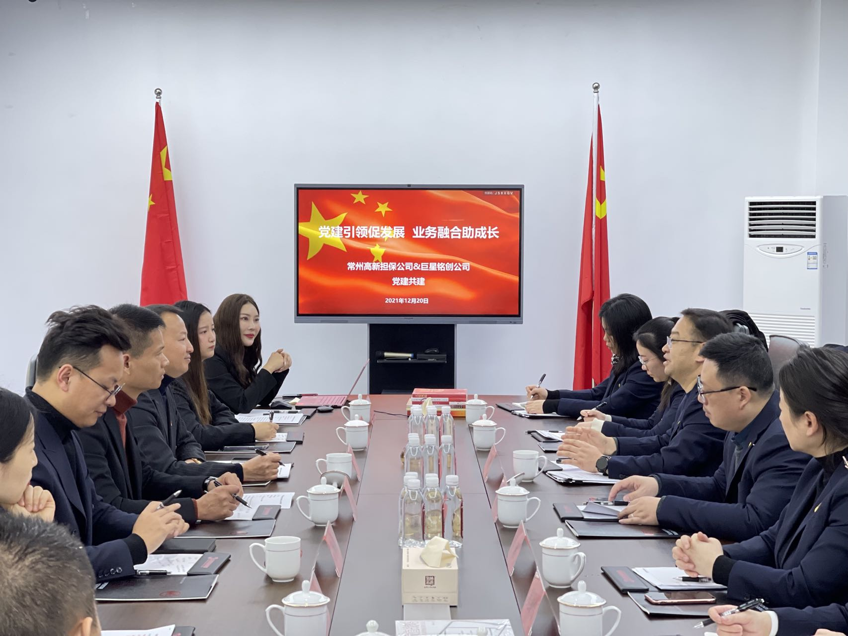 12月20日,常州高新?lián)9窘M織常州分公司、武進擔保公司有關(guān)人員,深入常州巨星銘創(chuàng)公司走訪調(diào)研,開展黨建共建活動。