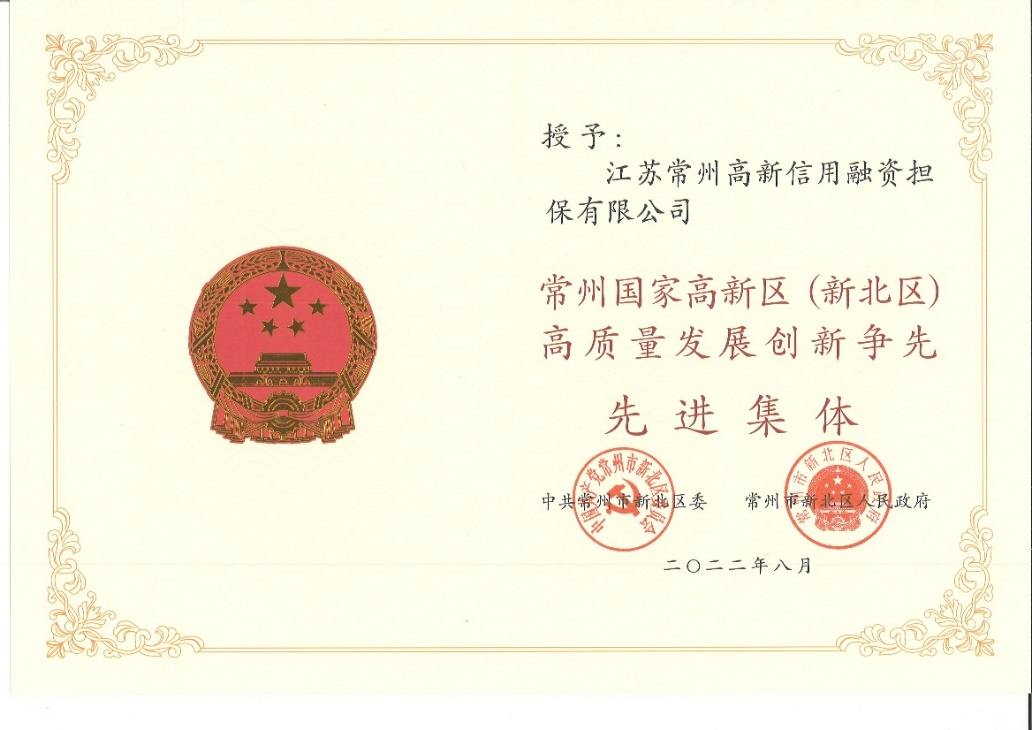 近日,常高新?lián)s獲常州國家高新區(qū)(新北區(qū))高質(zhì)量發(fā)展創(chuàng)優(yōu)爭先先進(jìn)集體榮譽稱號。