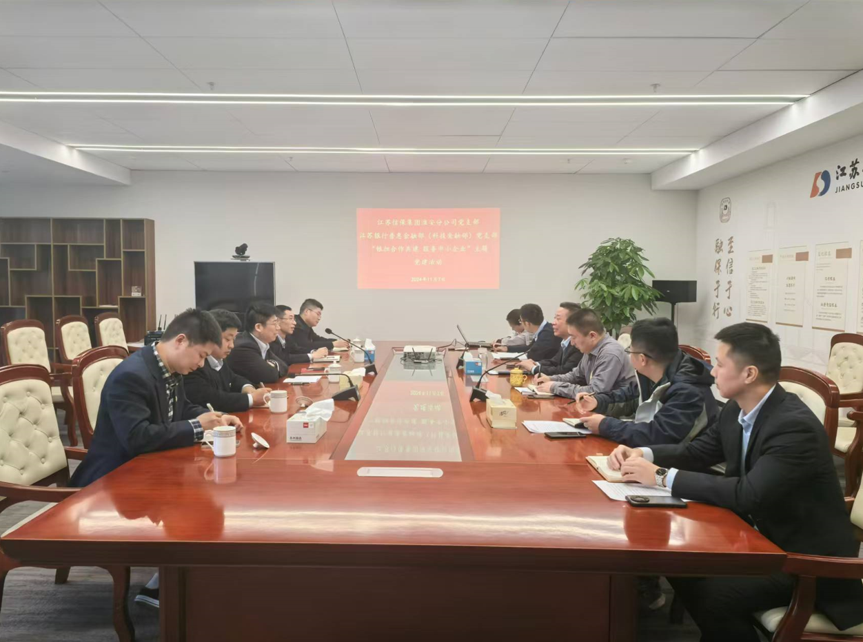 11月7日,淮安分公司黨支部與江蘇銀行淮安分行普惠金融部黨支部開展“銀擔合作共建,服務中小企業(yè)”主題黨建活動,并召開座談會,雙方全體黨員參加活動。