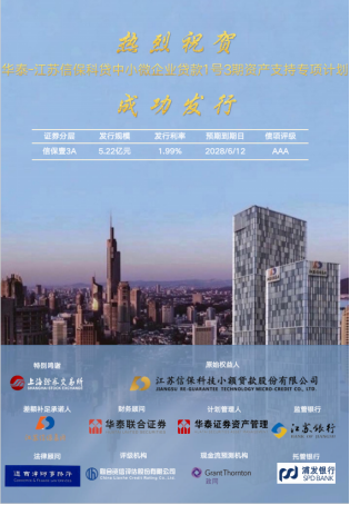 7月9日,科貸公司在上海證券交易所成功發(fā)行5.5億元“華泰-江蘇信??瀑J中小微企業(yè)貸款1號(hào)3期資產(chǎn)支持專項(xiàng)計(jì)劃”,順利完成總規(guī)模15億元的中小微企業(yè)貸款資產(chǎn)支持專項(xiàng)計(jì)劃發(fā)行工作。本期ABS期限3年,優(yōu)先級(jí)票面利率1.99%,創(chuàng)信保科貸資本市場(chǎng)融資利率新低。