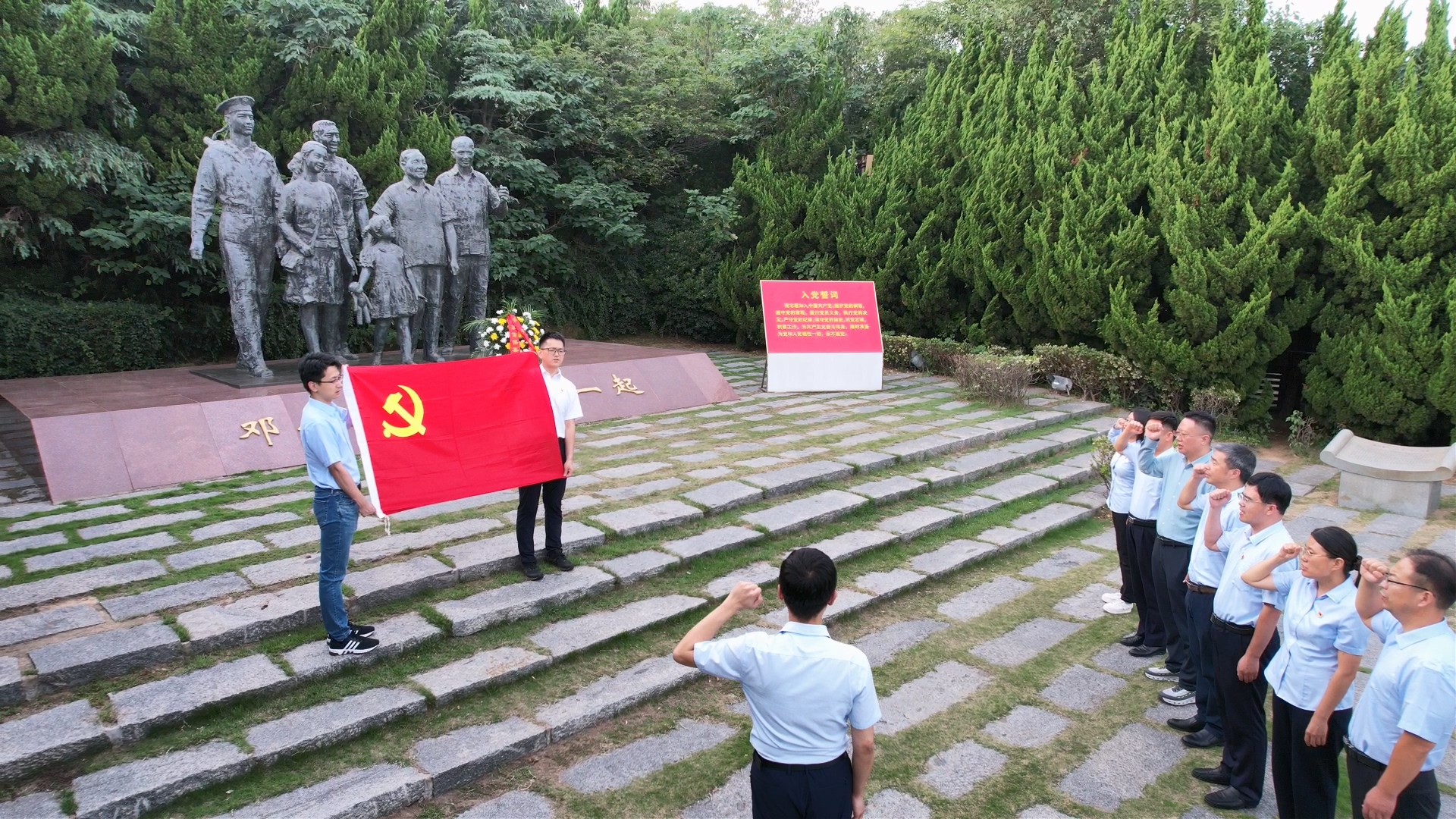 “鄧小平和人民在一起”雕塑公園位于連云港市連云區(qū)。沿著寬大的木質(zhì)臺階拾階而上,“鄧小平和人民在一起”群雕背依青山、面向大海,矗立在山頂。大家認(rèn)真聆聽講解員講述鄧小平同志艱苦奮斗無私奉獻(xiàn)的革命往事,重溫黨的崢嶸歲月和光輝歷史。活動現(xiàn)場,全體黨員向雕塑敬獻(xiàn)花籃,面向黨旗重溫入黨誓詞。隨后,大家來到鄧小平干部學(xué)院連云港辦學(xué)點,聆聽微黨課《在大海中永生》,回顧敬愛的鄧小平同志波瀾壯闊的一生,支部負(fù)責(zé)同志介紹了支部《深化“我是信保守島人”黨建品牌建設(shè)系列行動方案》有關(guān)情況,支部青年黨員代表作表態(tài)發(fā)言。
