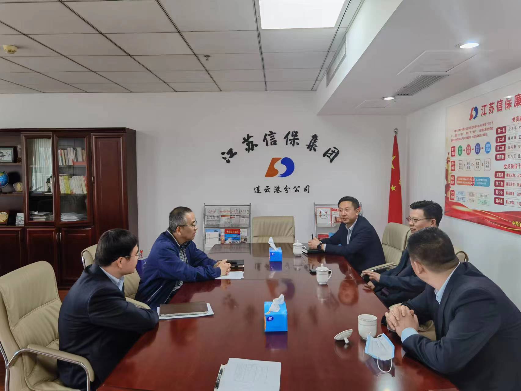 4月28日,江蘇銀行連云港分行行長助理陳玉春帶領(lǐng)分行公司部、小企業(yè)金融部到連云港分公司交流加強(qiáng)全面合作事宜。