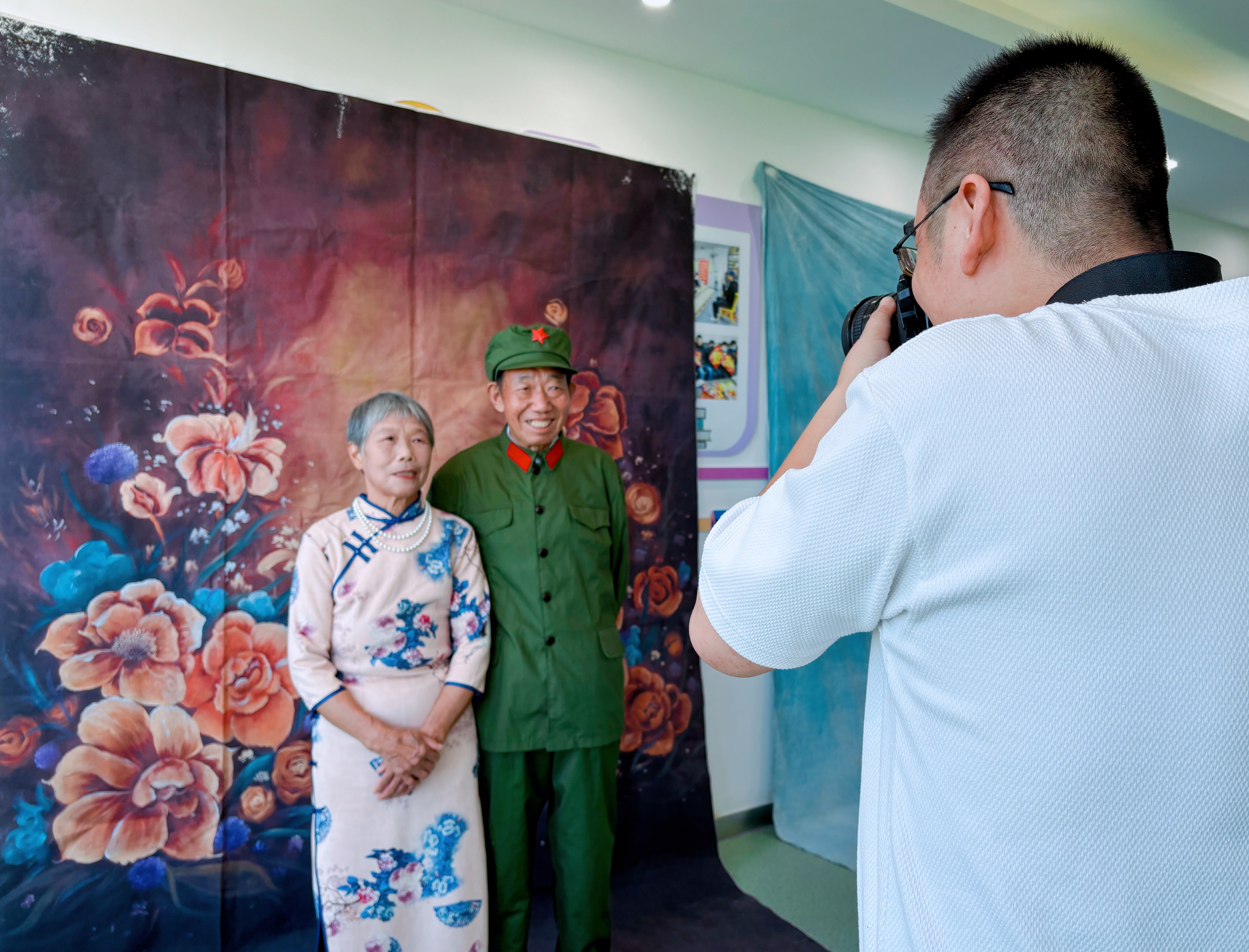 “以前條件不好,結(jié)婚的時候也沒拍過婚紗照,看年輕人都拍婚紗照很羨慕,這次活動讓我終于彌補了年輕時候的遺憾。”大家紛紛感慨。綠色的軍裝、白色的婚紗,每一套服裝、每一張照片,都讓退役老兵回到了那個美好的日子。