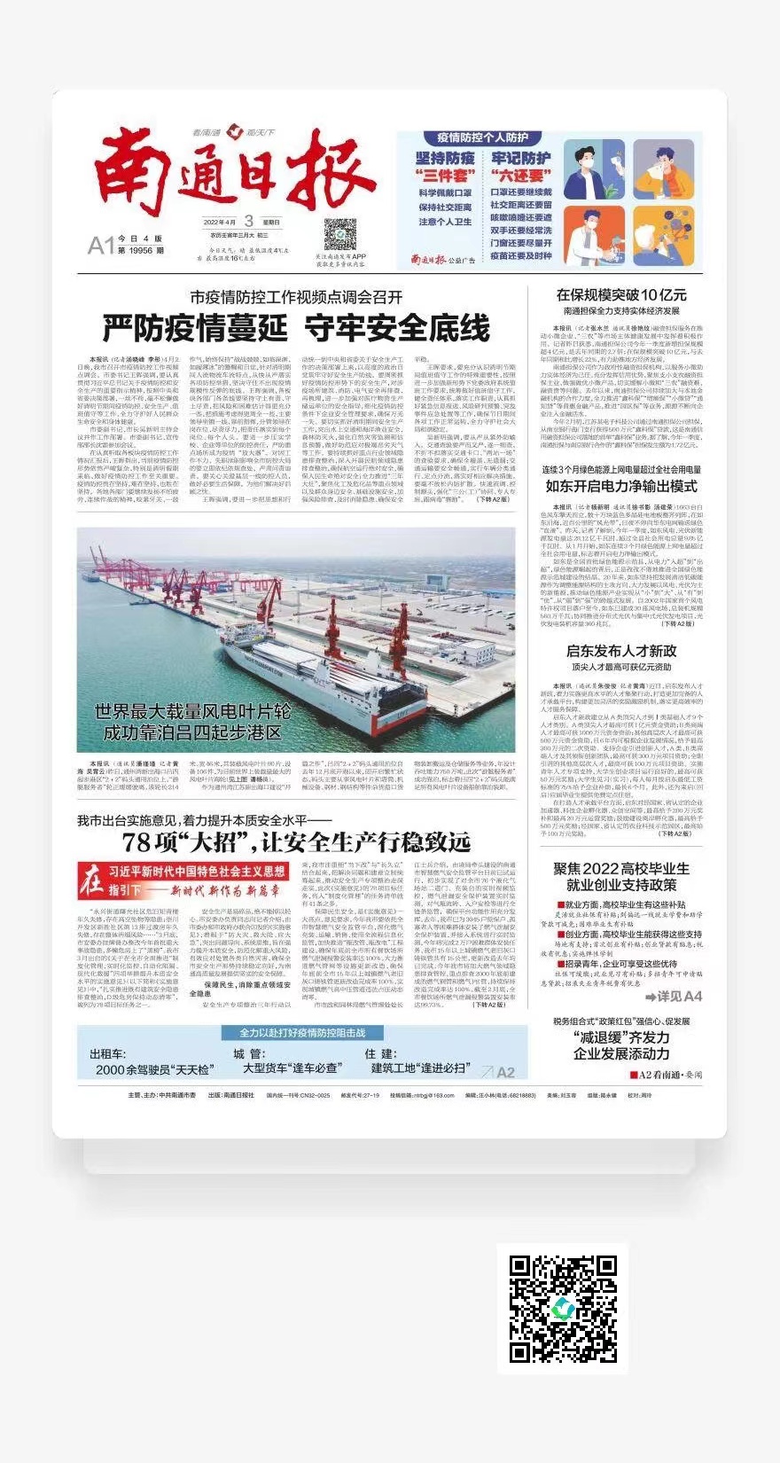 4月3日,《南通日報》頭版刊載《在保規(guī)模突破10億元!南通擔(dān)保全力支持實體經(jīng)濟發(fā)展》,報道南通擔(dān)保2022年在集團堅強領(lǐng)導(dǎo)下,充分發(fā)揮信用優(yōu)勢,聚焦支小支農(nóng)融資擔(dān)保主業(yè),做強做優(yōu)小微產(chǎn)品,切實緩解“小微”“三農(nóng)”融資難、融資貴等問題,助力南通實體經(jīng)濟渡過疫情難關(guān),成為服務(wù)南通地方經(jīng)濟發(fā)展的重要金融力量。截至2022年3月31日,南通擔(dān)保新增擔(dān)保規(guī)模超4億元,是去年同期的2.7倍;直接服務(wù)南通實體小微企業(yè)230余戶,在保規(guī)模突破10億元,與去年同期相比增長22%,其中如皋地區(qū)超8億元,支小支農(nóng)9億元,占比82.25%。