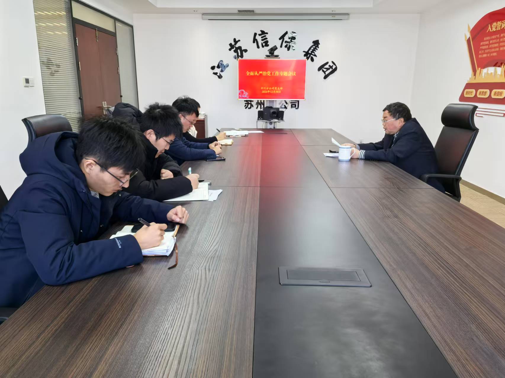 12月30日,蘇州分公司黨支部召開下半年全面從嚴治黨專題會議,全體黨員參會。