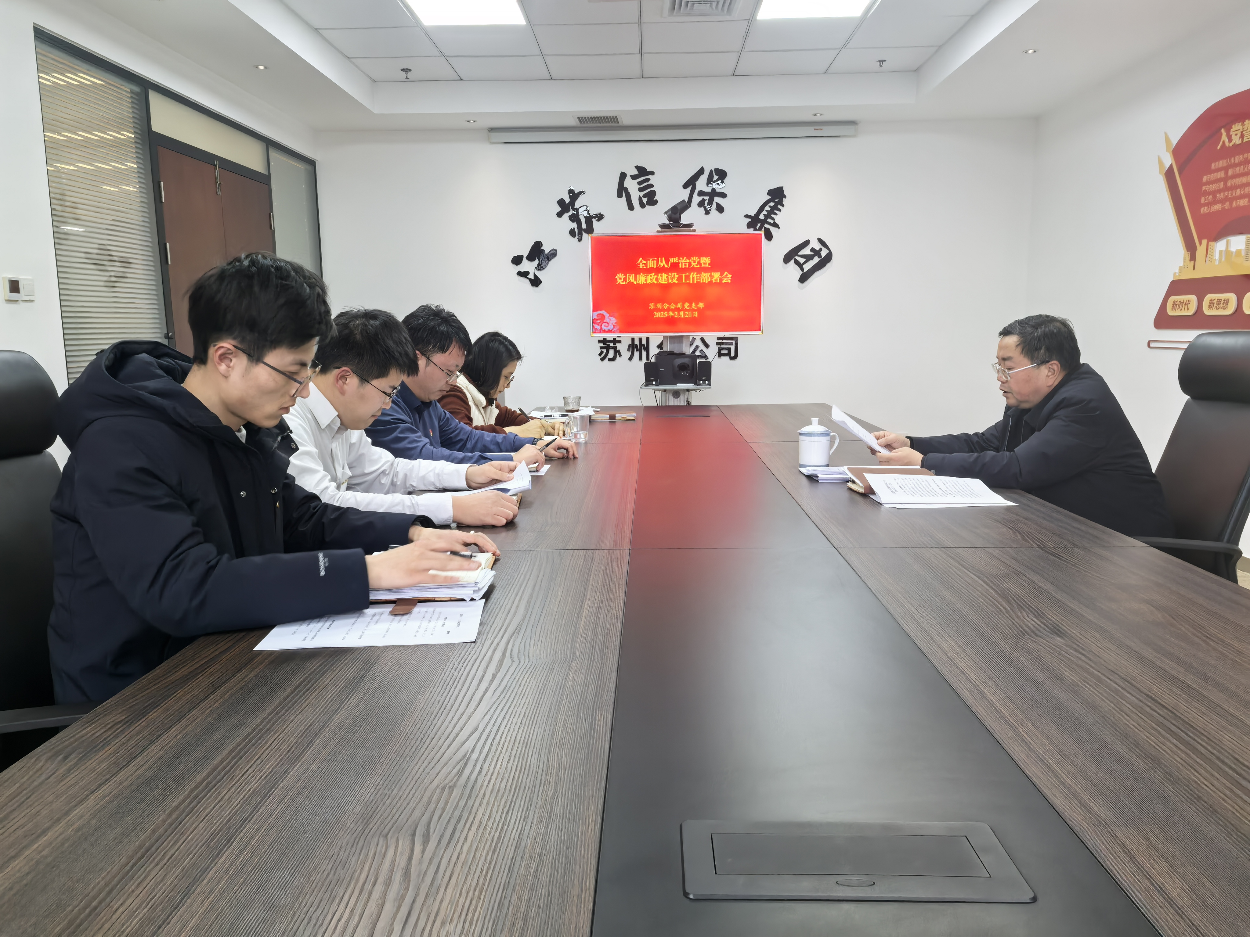 2月21日,蘇州分公司黨支部召開(kāi)全面從嚴(yán)治黨暨黨風(fēng)廉政建設(shè)工作部署會(huì),全體黨員參會(huì)。