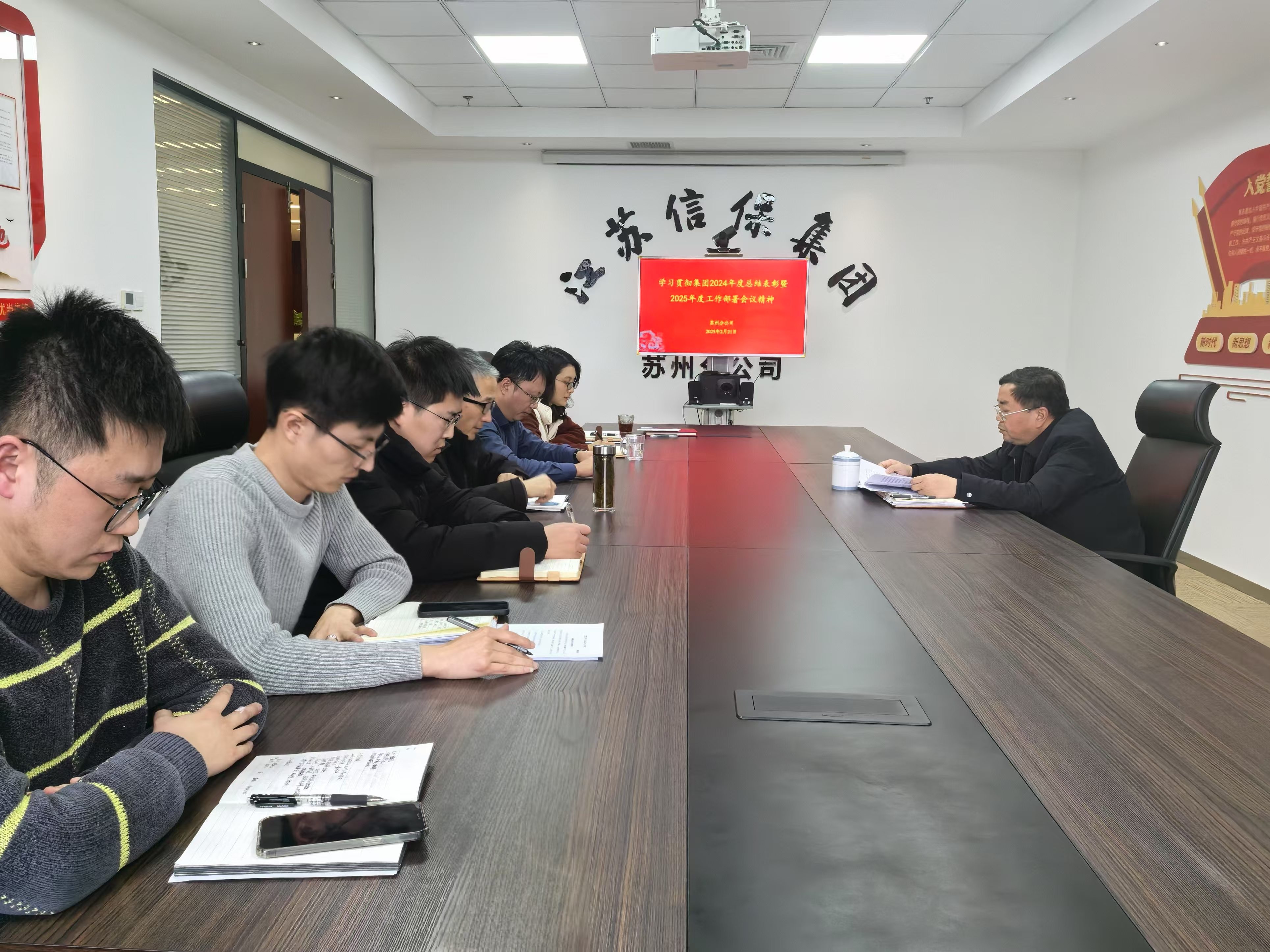 2月21日,蘇州分公司召開專題會(huì)議,傳達(dá)學(xué)習(xí)集團(tuán)2024年度總結(jié)表彰暨2025年度工作部署會(huì)、2025年度全面從嚴(yán)治黨工作會(huì)議精神,公司全體員工參會(huì)。