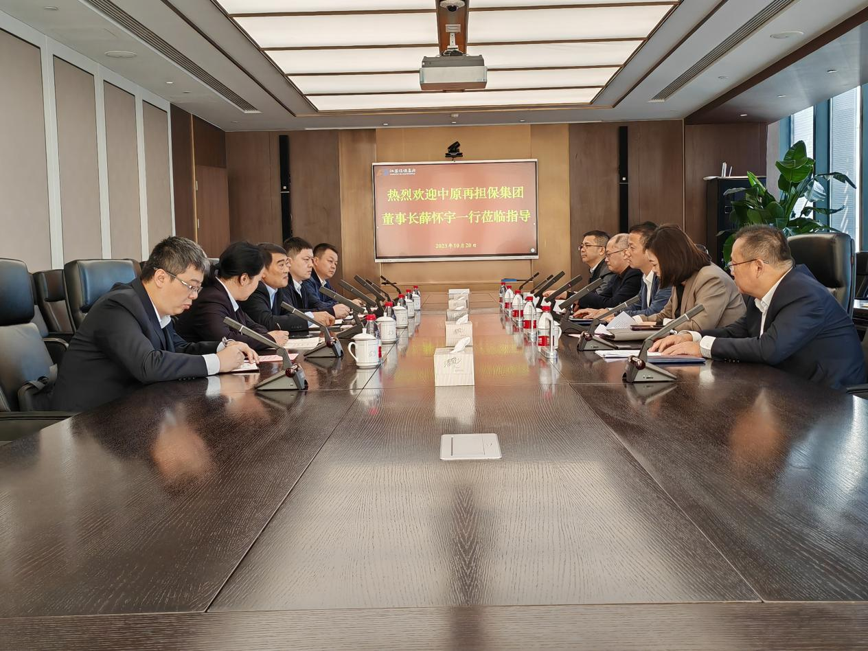 10月20日,中原再擔保集團黨委書記、董事長薛懷宇一行到集團交流。集團黨委委員、副總裁趙東坡出席交流座談會。