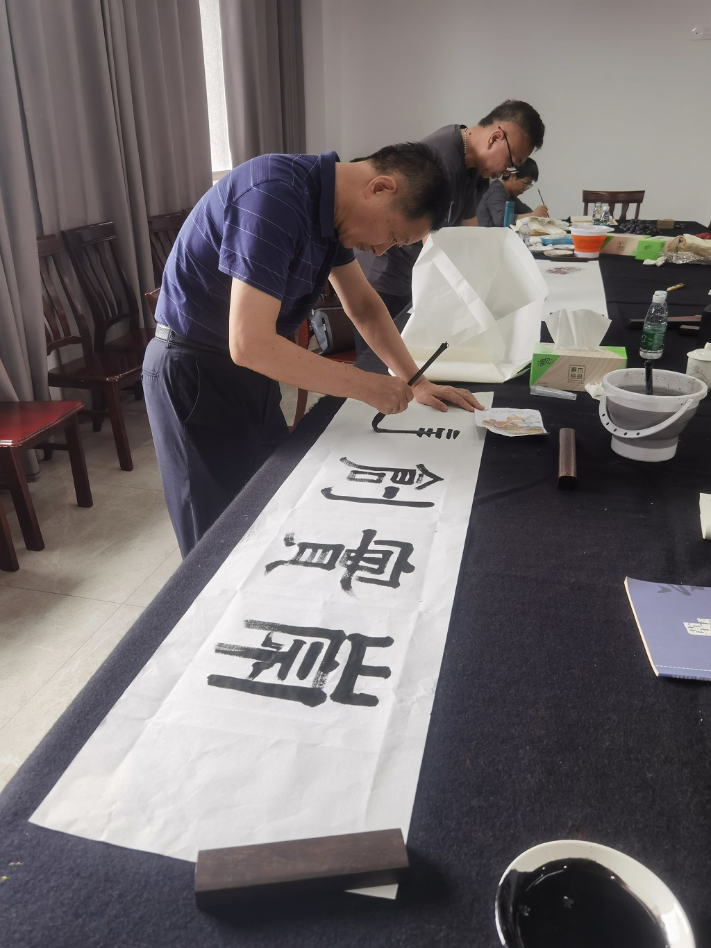 江蘇省美術(shù)家協(xié)會(huì)會(huì)員、姜堰區(qū)美術(shù)家協(xié)會(huì)副主席陳進(jìn)代表書畫家講話,此次“姜堰書畫”基層行是讓文藝深入基層扎根群眾,讓藝術(shù)更好地為人民服務(wù)的具體體現(xiàn),同時(shí)也是深入基層進(jìn)行文藝創(chuàng)作和采風(fēng)學(xué)習(xí)的過程,希望通過此次活動(dòng),讓大家感受到中國傳統(tǒng)文化的魅力,增強(qiáng)企業(yè)文化的積淀。