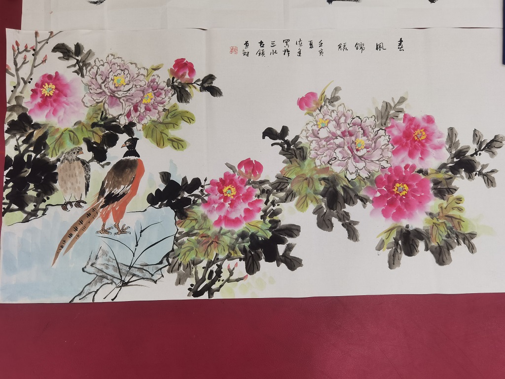 各位書畫家現(xiàn)場創(chuàng)作“崇實(shí)、創(chuàng)新、擔(dān)當(dāng)、共享”、“用信用心 讓融資變簡單”等書法作品,以及以蓮花、牡丹為主題的“清韻”“春風(fēng)錦繡”等畫作。(泰州國信擔(dān)保 張華生)