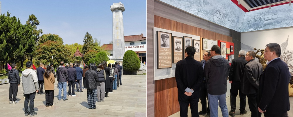 陵園內(nèi)的烈士紀(jì)念堂展示了當(dāng)?shù)亟倜沂康挠⒂率论E,一張張圖片、一段段文字都訴說著革命前輩在姜堰這片土地上的英雄壯舉,他們的英勇事跡和崇高精神,激勵著區(qū)域員工堅(jiān)定信仰、勇毅前行,以實(shí)際行動傳承和弘揚(yáng)革命精神。