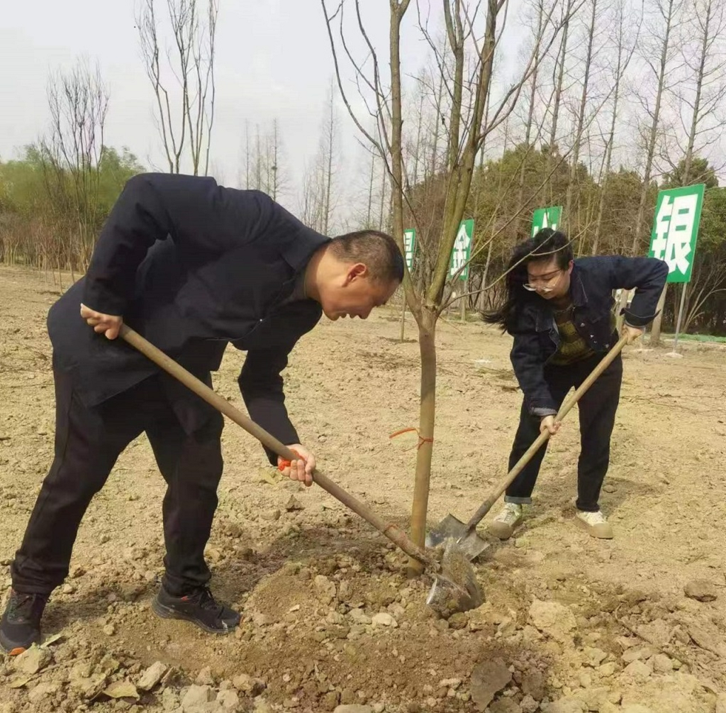 植樹現(xiàn)場,大家精神抖擻、干勁十足,挖土、扶苗、填坑、澆水,每道工序都分工明確、團結(jié)協(xié)作,呈現(xiàn)出一片繁忙有序、熱火朝天的勞動景象。