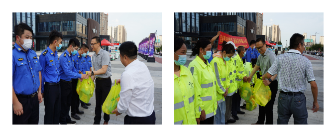 8月9日,鹽城分公司黨支部在當(dāng)?shù)匦屡镂幕瘡V場舉行“喜迎二十大 強國復(fù)興有我”志愿服務(wù)活動之“炎炎夏日送清涼 滴滴關(guān)懷暖人心”主題黨日活動, 給堅守在一線的城管工作人員和環(huán)衛(wèi)工人送去清涼物資。本次活動充分發(fā)揮了“紅色鹽阜信保鐵軍”黨支部的社會責(zé)任與國企擔(dān)當(dāng),得到鹽城市鹽南高新區(qū)城管局的肯定與感謝。(鹽城分公司張麗君)