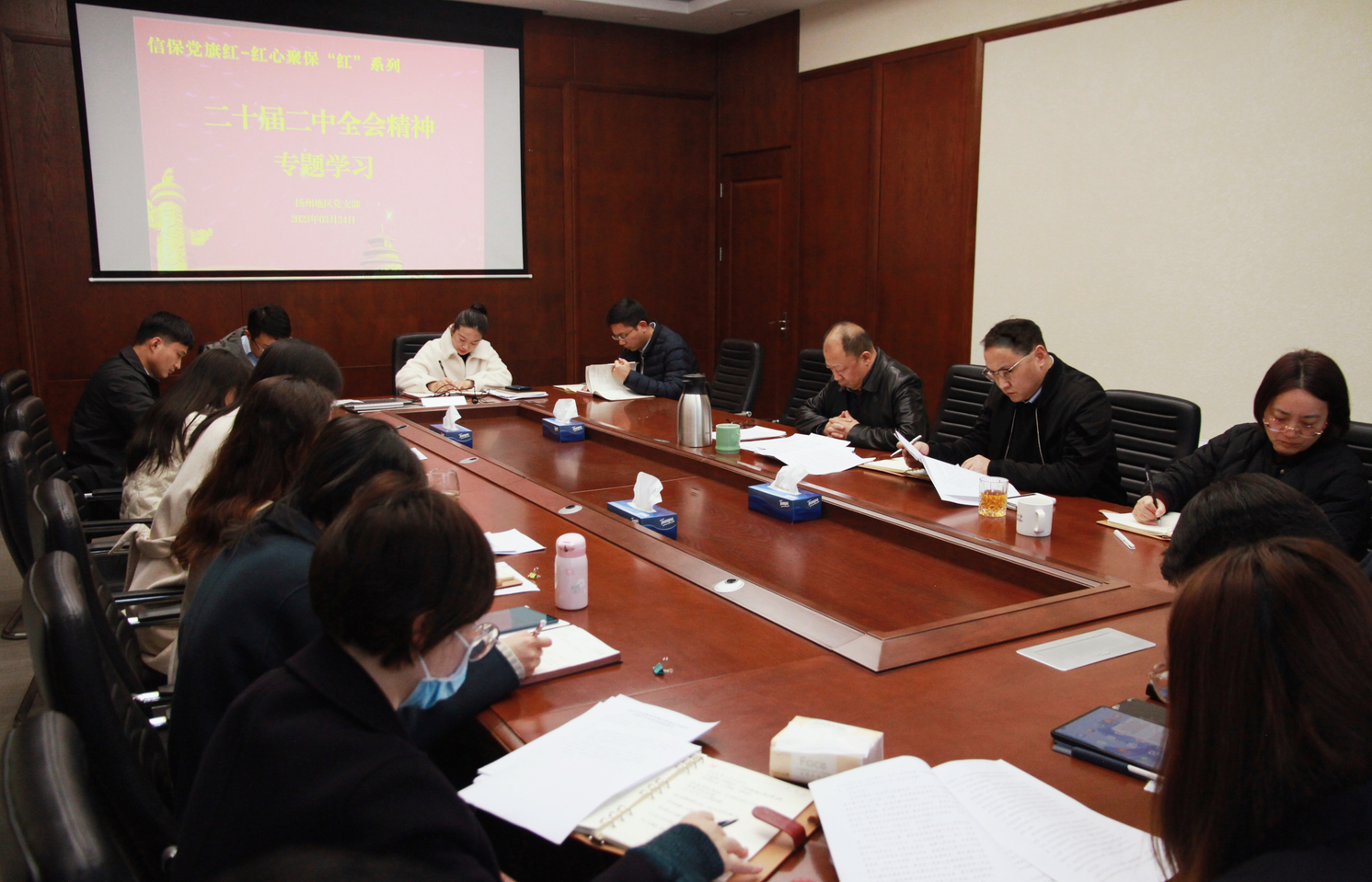 24日下午,揚(yáng)州地區(qū)黨支部開展黨的二十屆二中全會(huì)精神和全國(guó)“兩會(huì)”精神專題學(xué)習(xí)暨廉潔小課堂活動(dòng),傳達(dá)黨的二十屆二中全會(huì)精神,支部書記以“從三個(gè)維度深刻把握黨的二十大精神”為主題講授黨課,并集中觀看廉政警示教育片《永遠(yuǎn)吹沖鋒號(hào)》。揚(yáng)州一體化區(qū)域全體員工參加活動(dòng)。