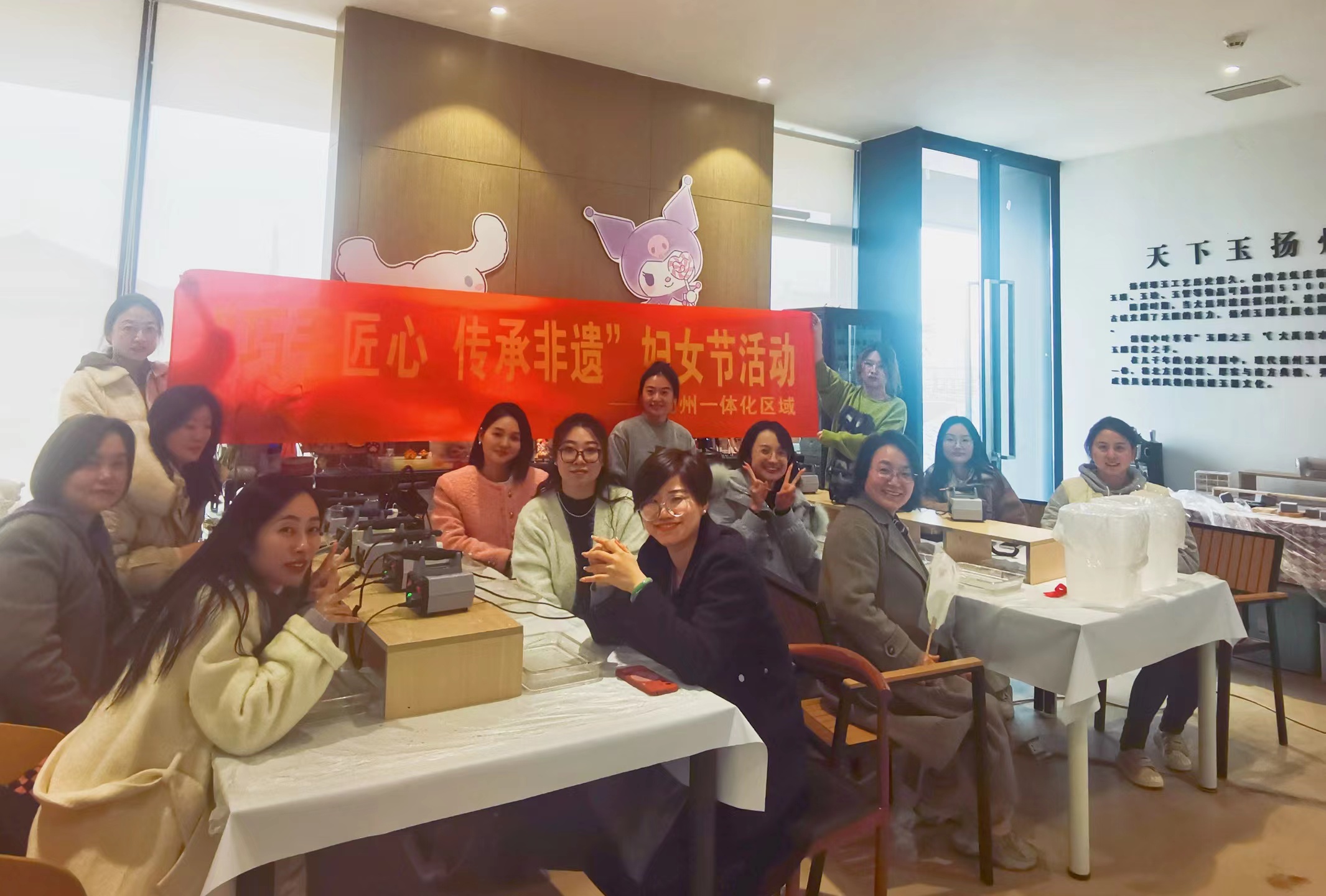 一場(chǎng)匠心之旅,一段曼妙時(shí)光,在繁忙的工作之余,把非遺融入生活,把歲月融入手心。為慶祝第114個(gè)國(guó)際婦女節(jié),3月8日,揚(yáng)州一體化區(qū)域舉辦“女神匠心,傳承非遺”的非遺玉器手作體驗(yàn)活動(dòng),讓廣大女性職工們體驗(yàn)非遺文化的魅力,開(kāi)啟一場(chǎng)回歸心靈之美。