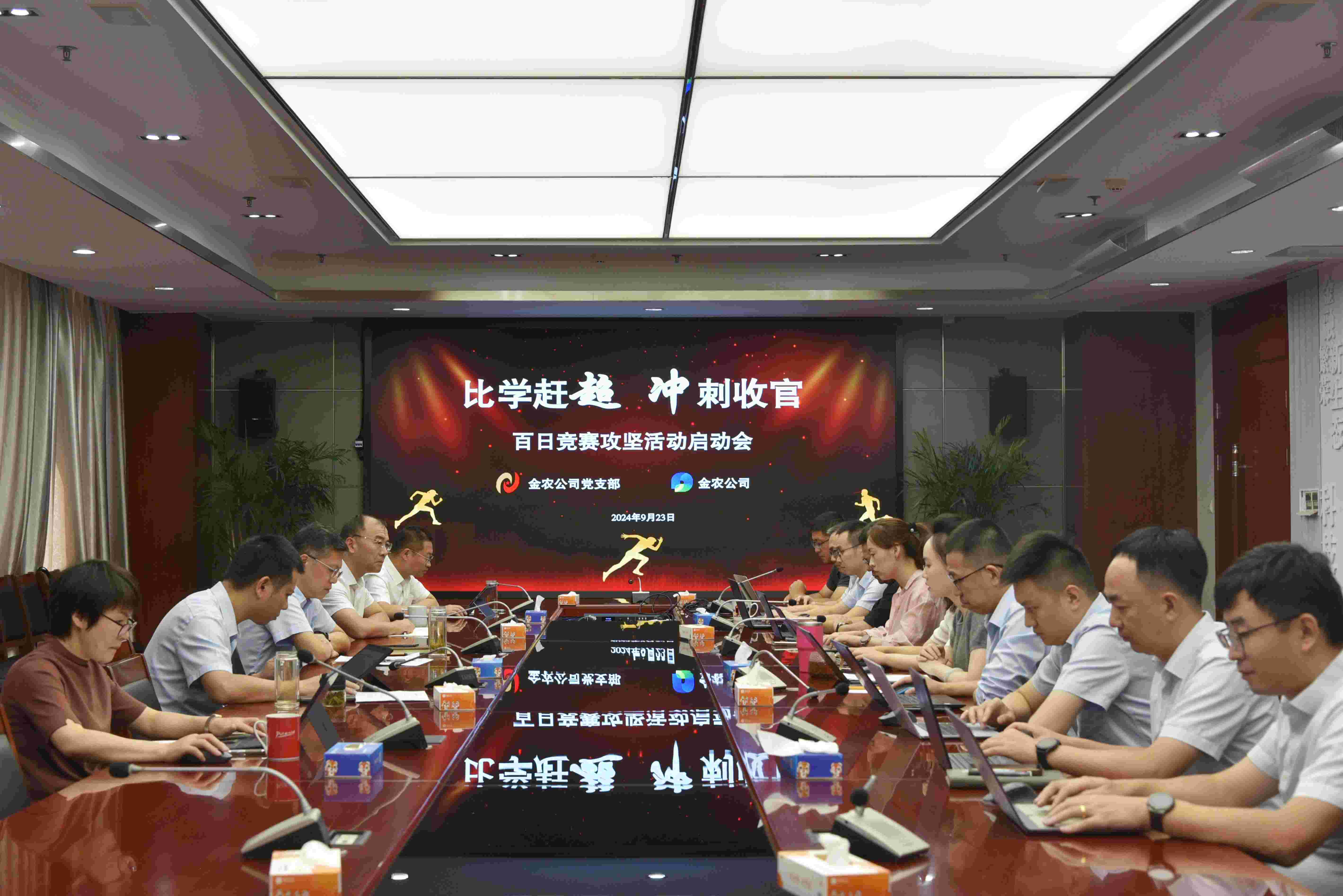為深入貫徹落實黨的二十屆三中全會精神,以實際行動迎接中華人民共和國成立75周年,切實改進提升公司黨建工作成效,全力攻堅決戰(zhàn)公司年度目標任務,不斷推進黨建工作與業(yè)務發(fā)展深度融合,持續(xù)實施公司改革深化提升行動,金農公司黨支部決定自9月23日起,開展為期100天的“比學趕超、沖刺收官”百日競賽攻堅活動。當天,公司召開活動啟動會。公司領導班子成員及中層管理人員參加會議。