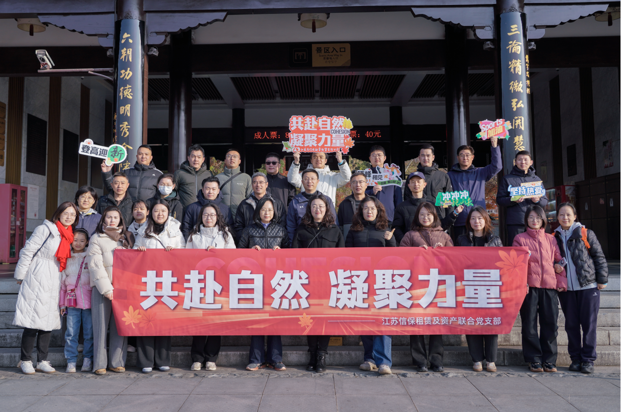 為豐富員工業(yè)余文化生活,進一步提升團隊活力和凝聚力,12月14日,江蘇信保租賃及資產(chǎn)聯(lián)合黨支部赴南京市棲霞山風景區(qū),開展“共赴自然 凝聚力量”徒步登山活動,江蘇信保租賃及資產(chǎn)聯(lián)合黨支部、租賃及資產(chǎn)管理公司30余名員工及家屬參加活動。