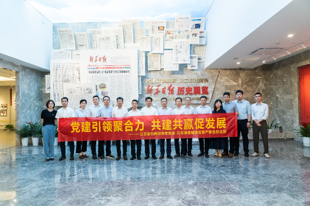 7月8日,為深化黨建引領(lǐng)發(fā)展,強(qiáng)化“租擔(dān)”合作,江蘇信保租賃及資產(chǎn)聯(lián)合黨支部與江蘇金創(chuàng)融資再擔(dān)保股份有限公司黨支部開展黨建共建活動(dòng)。南京市地方金融管理局監(jiān)管一處有關(guān)領(lǐng)導(dǎo),租賃公司董事長(zhǎng)、總經(jīng)理,江蘇金創(chuàng)再擔(dān)保公司董事長(zhǎng)薛大松,總經(jīng)理湯國(guó)林出席活動(dòng)。