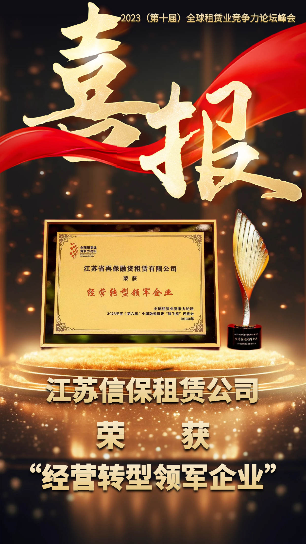 12月14日,2023 年度(第六屆)中國融資租賃“騰飛獎(jiǎng)”公布評(píng)選結(jié)果,江蘇信保租賃公司憑借在轉(zhuǎn)型發(fā)展中的突出表現(xiàn),獲評(píng)中國融資租賃“騰飛獎(jiǎng)”經(jīng)營轉(zhuǎn)型領(lǐng)軍企業(yè)。(信保租賃 王靜怡)