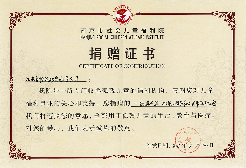 在端午節(jié)和“六一”兒童節(jié)雙節(jié)來臨之際,信保租賃走進南京市社會兒童福利院開展愛心捐贈活動。公司員工及子女積極響應此次公益活動,以實際行動踐行社會主義核心價值觀。共有45名員工參與捐贈,共籌得善款7250元,其中5000元用于公益捐贈,剩余款項為福利院購置一批尿不濕、紙巾、粽子等生活物資,為孩子們的成長注入一份溫暖與關懷。